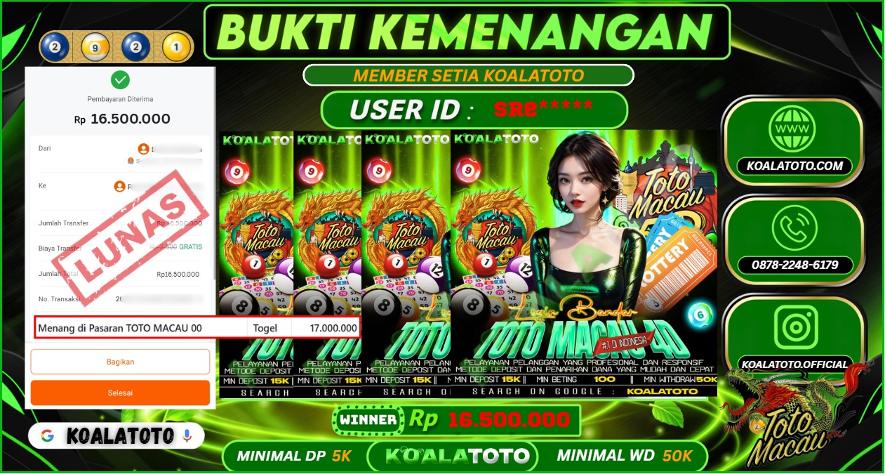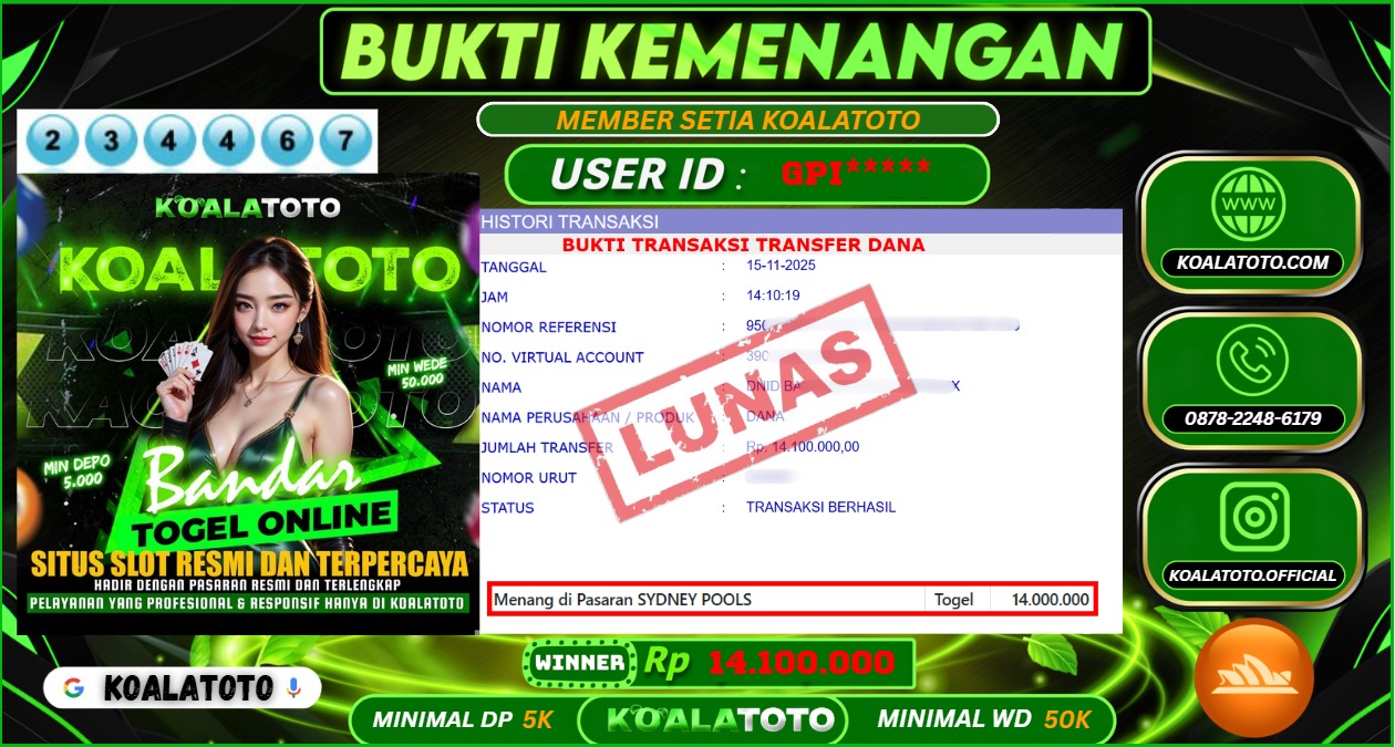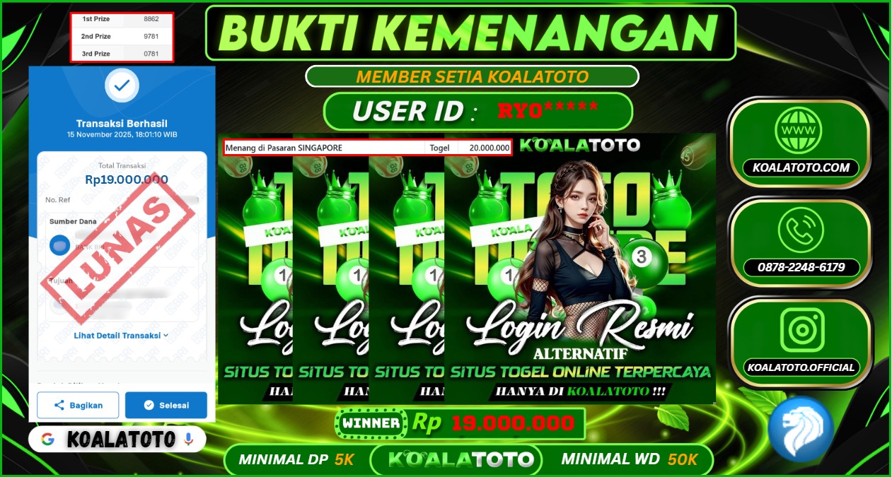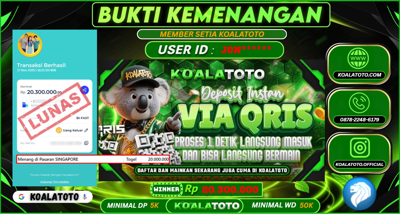 KOALATOTO JACKPOT TOGEL SINGAPORE POOLS || Rp.20.300.000.,- DI BAYAR LUNAS !!!
