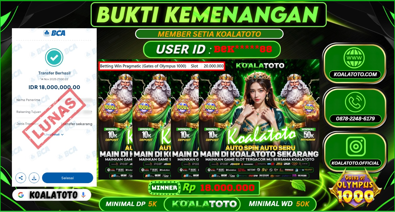 Selamat kepada USER ID : JON**** || Telah berhasil mendapatkan kemenangan pada Pasaran TOGEL SINGAPORE POOLS Pihak KOALATOTO Mengucapkan Terima Kasih Kepada Pemenang karena Sudah Mempercayakan KOALATOTO sebagai Platform Situs Bandar Togel Online dan Slot Online Terpercaya & Terbesar yang Membayar Kemenangan Member berapapun itu tanpa ribet sampai LUNAS !!! Setelah mengisi FORMULIR WITHDRAW pihak KOALATOTO membutuhkan waktu sekitar 1-3 MENIT Untuk memproseskan Kemenangan Kalian Kami menegaskan bahwa KOALATOTO bukanlah Bandar Kaleng-Kaleng. Kami meyakinkan bahwa semua kemenangan akan dibayarkan Bergabunglah dengan KOALATOTO sekarang dan dapatkan kesempatan memenangkan Jackpot besar hanya di KOALATOTO !!!