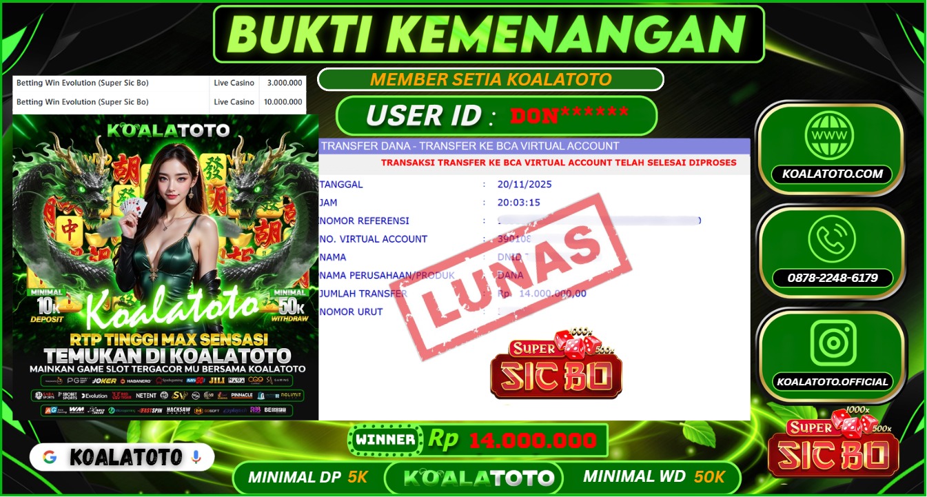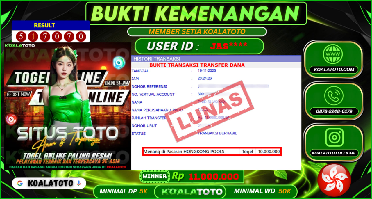 Selamat kepada USER ID : Rkes**** || Telah berhasil mendapatkan kemenangan pada Pasaran TOGEL HONGKONG POOLS Pihak KOALATOTO Mengucapkan Terima Kasih Kepada Pemenang karena Sudah Mempercayakan KOALATOTO sebagai Platform Situs Bandar Togel Online dan Slot Online Terpercaya & Terbesar yang Membayar Kemenangan Member berapapun itu tanpa ribet sampai LUNAS !!! Setelah mengisi FORMULIR WITHDRAW pihak KOALATOTO membutuhkan waktu sekitar 1-3 MENIT Untuk memproseskan Kemenangan Kalian Kami menegaskan bahwa KOALATOTO bukanlah Bandar Kaleng-Kaleng. Kami meyakinkan bahwa semua kemenangan akan dibayarkan Bergabunglah dengan KOALATOTO sekarang dan dapatkan kesempatan memenangkan Jackpot besar hanya di KOALATOTO !!!