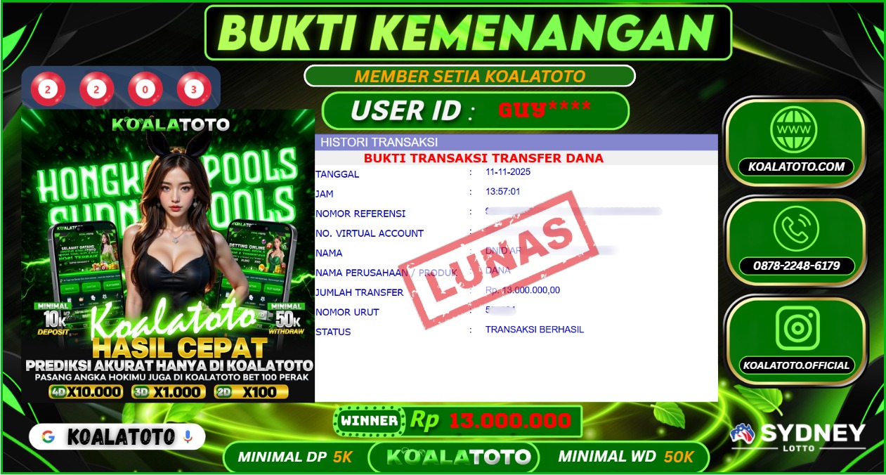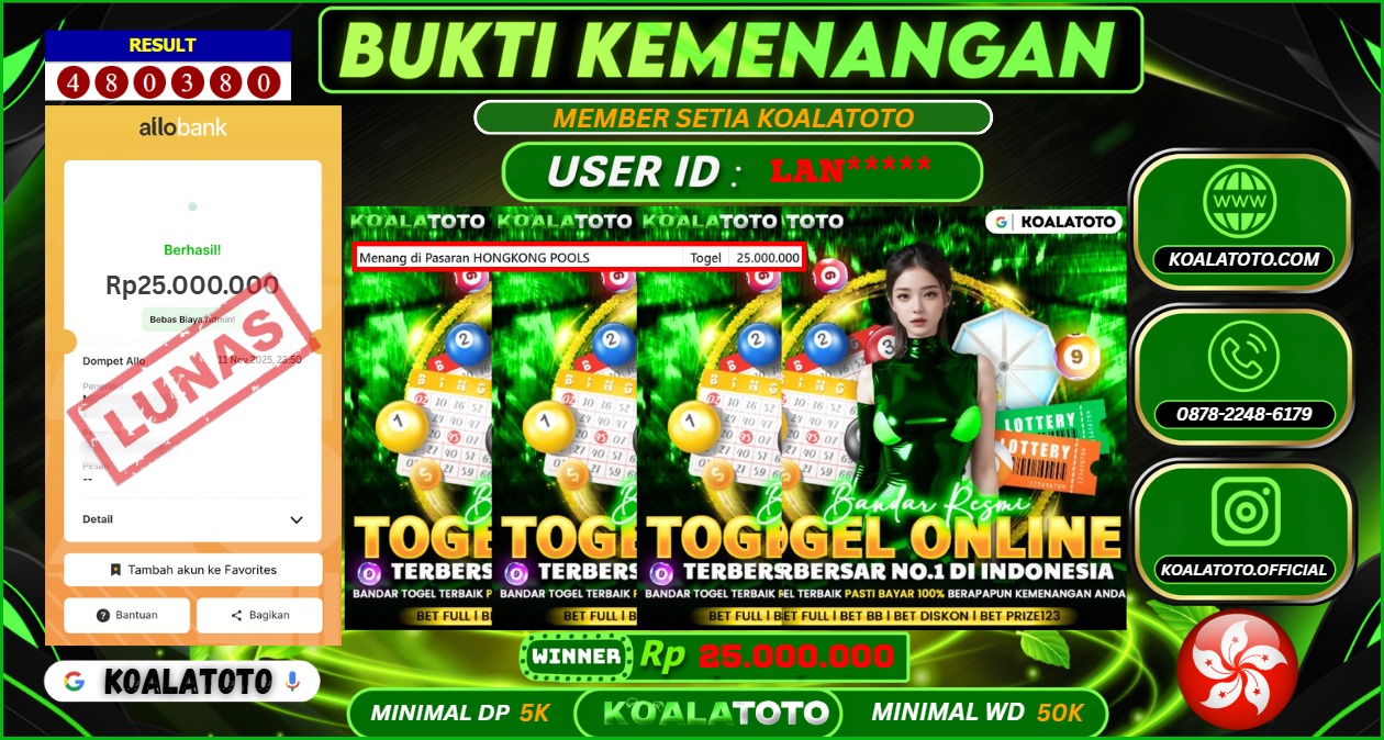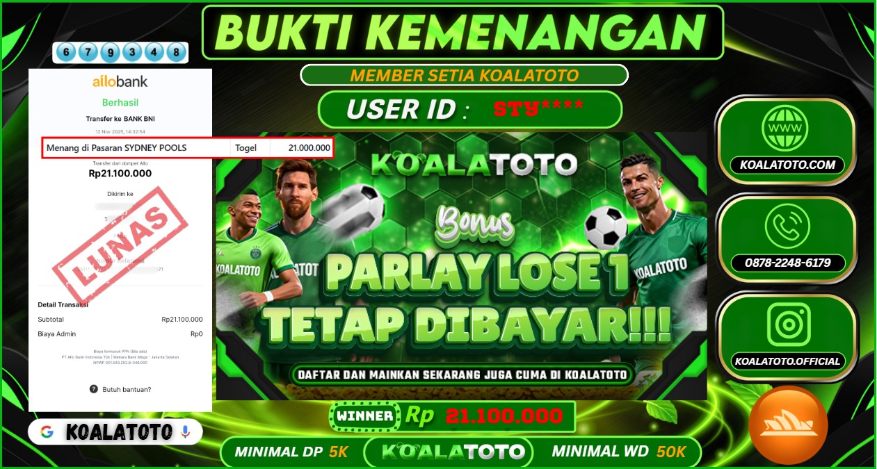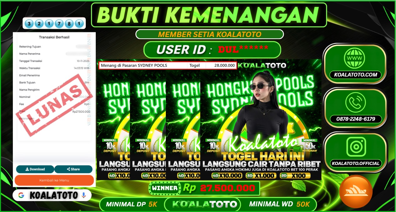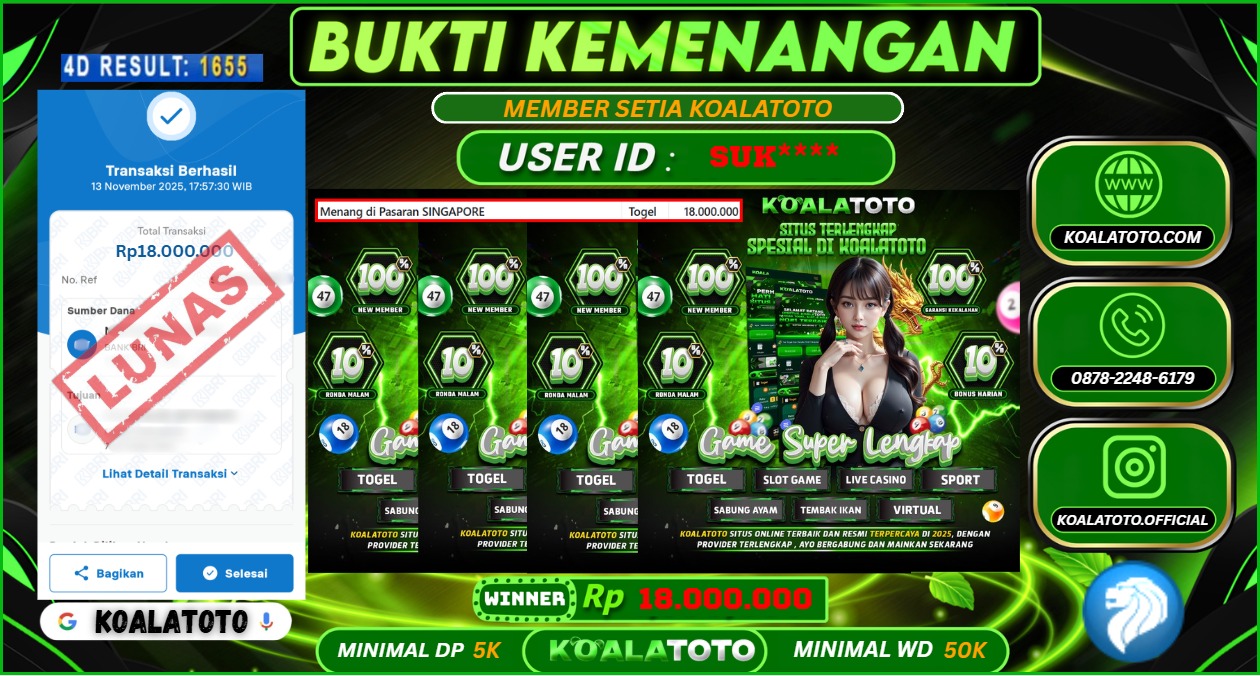 KOALATOTO JACKPOT TOGEL SINGAPORE POOLS || Rp.18.000.000.,- DI BAYAR LUNAS !!!
