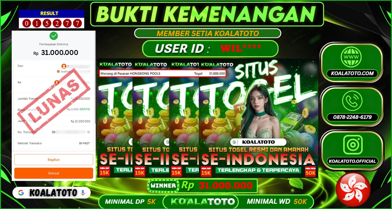 Selamat kepada USER ID : SUK**** || Telah berhasil mendapatkan kemenangan pada Pasaran TOGEL SINGAPORE POOLS Pihak KOALATOTO Mengucapkan Terima Kasih Kepada Pemenang karena Sudah Mempercayakan KOALATOTO sebagai Platform Situs Bandar Togel Online dan Slot Online Terpercaya & Terbesar yang Membayar Kemenangan Member berapapun itu tanpa ribet sampai LUNAS !!! Setelah mengisi FORMULIR WITHDRAW pihak KOALATOTO membutuhkan waktu sekitar 1-3 MENIT Untuk memproseskan Kemenangan Kalian Kami menegaskan bahwa KOALATOTO bukanlah Bandar Kaleng-Kaleng. Kami meyakinkan bahwa semua kemenangan akan dibayarkan Bergabunglah dengan KOALATOTO sekarang dan dapatkan kesempatan memenangkan Jackpot besar hanya di KOALATOTO !!!