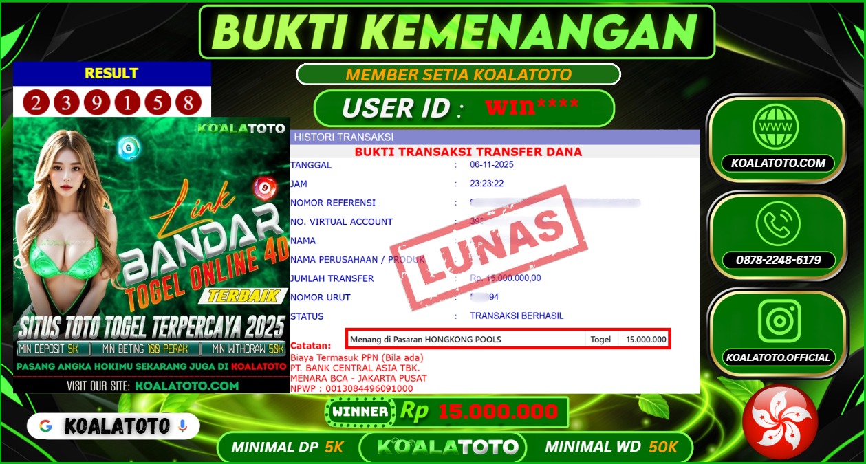 KOALATOTO JACKPOT TOGEL HONGKONG POOLS || Rp.15.000.000.,- DI BAYAR LUNAS !!!