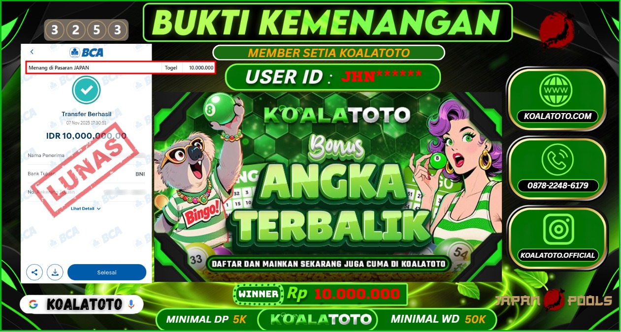 KOALATOTO JACKPOT TOGEL JAPAN POOLS || Rp.10.000.000.,- DI BAYAR LUNAS !!!