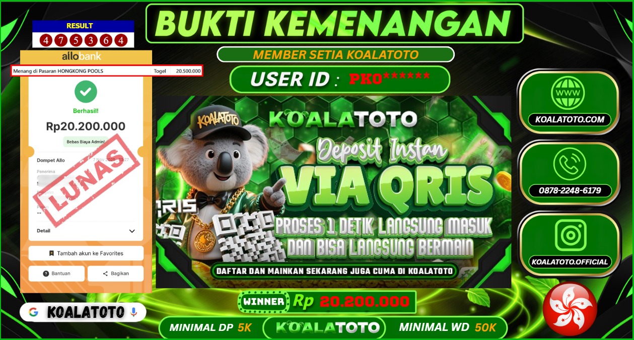 KOALATOTO JACKPOT TOGEL HONGKONG POOLS || Rp.20.200.000.,- DI BAYAR LUNAS !!!