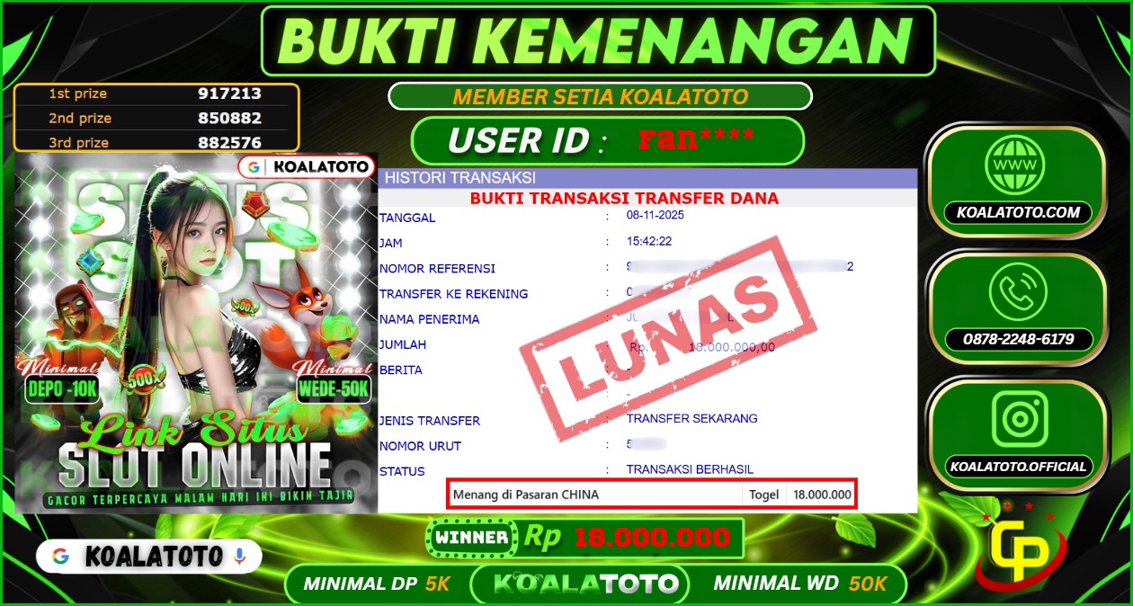 KOALATOTO JACKPOT TOGEL CHINA POOLS || Rp.18.000.000.,- DI BAYAR LUNAS !!!