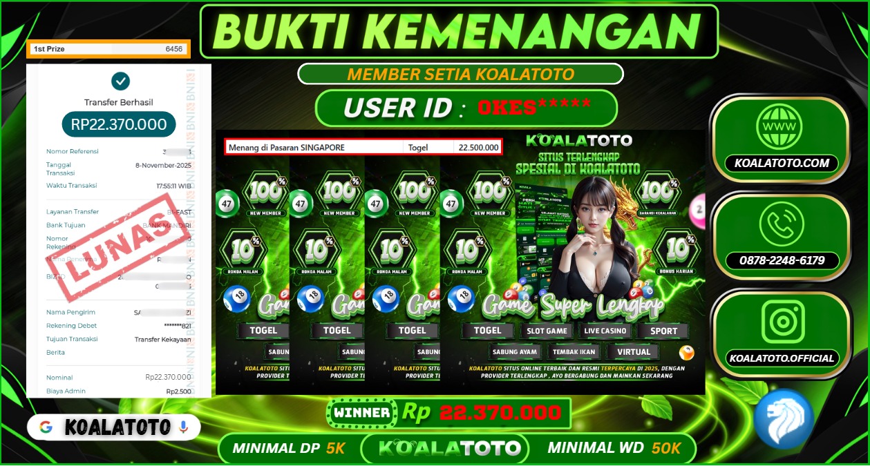 KOALATOTO JACKPOT TOGEL SINGAPORE POOLS || Rp.22.370.000.,- DI BAYAR LUNAS !!!