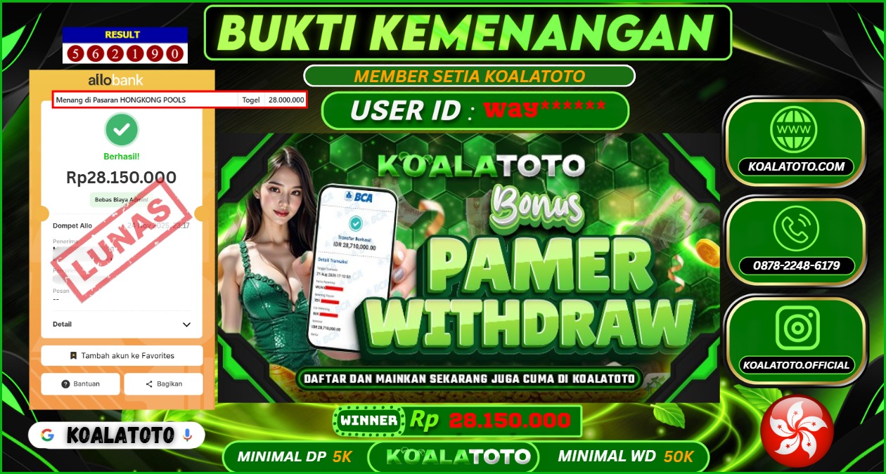 KOALATOTO JACKPOT TOGEL HONGKONG POOLS || Rp.28.150.000.,- DI BAYAR LUNAS !!!