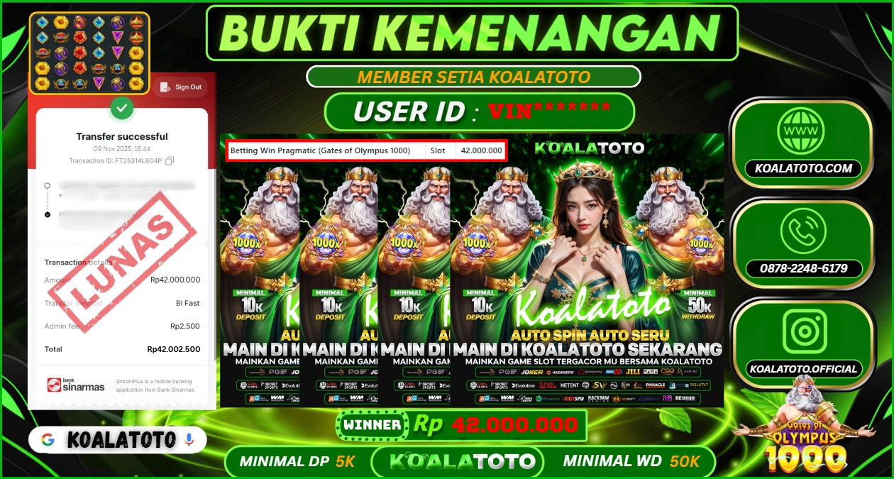 🔥KOALATOTO JACKPOT SLOT GATES OF OLYMPUS 1000 || Rp.42.000.000.,- DI BAYAR LUNAS !!!🔥