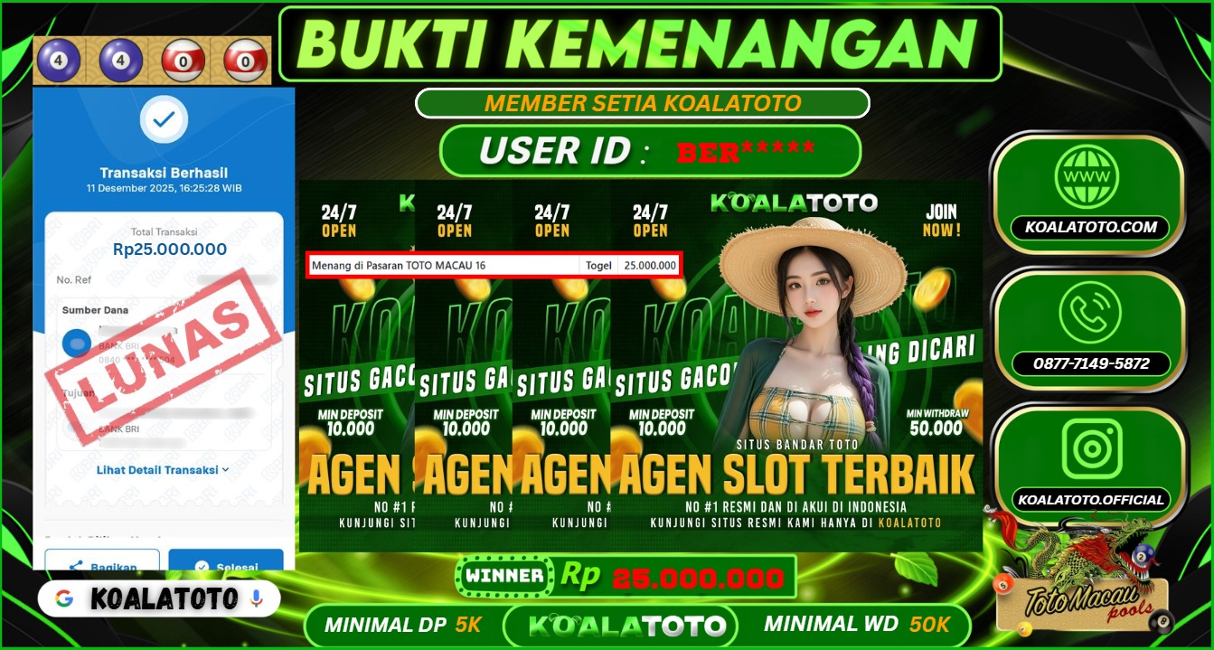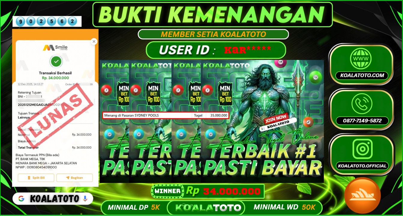 KOALATOTO JACKPOT TOGEL HONGKONG POOLS || Rp.25.000.000.,- DI BAYAR LUNAS !!!