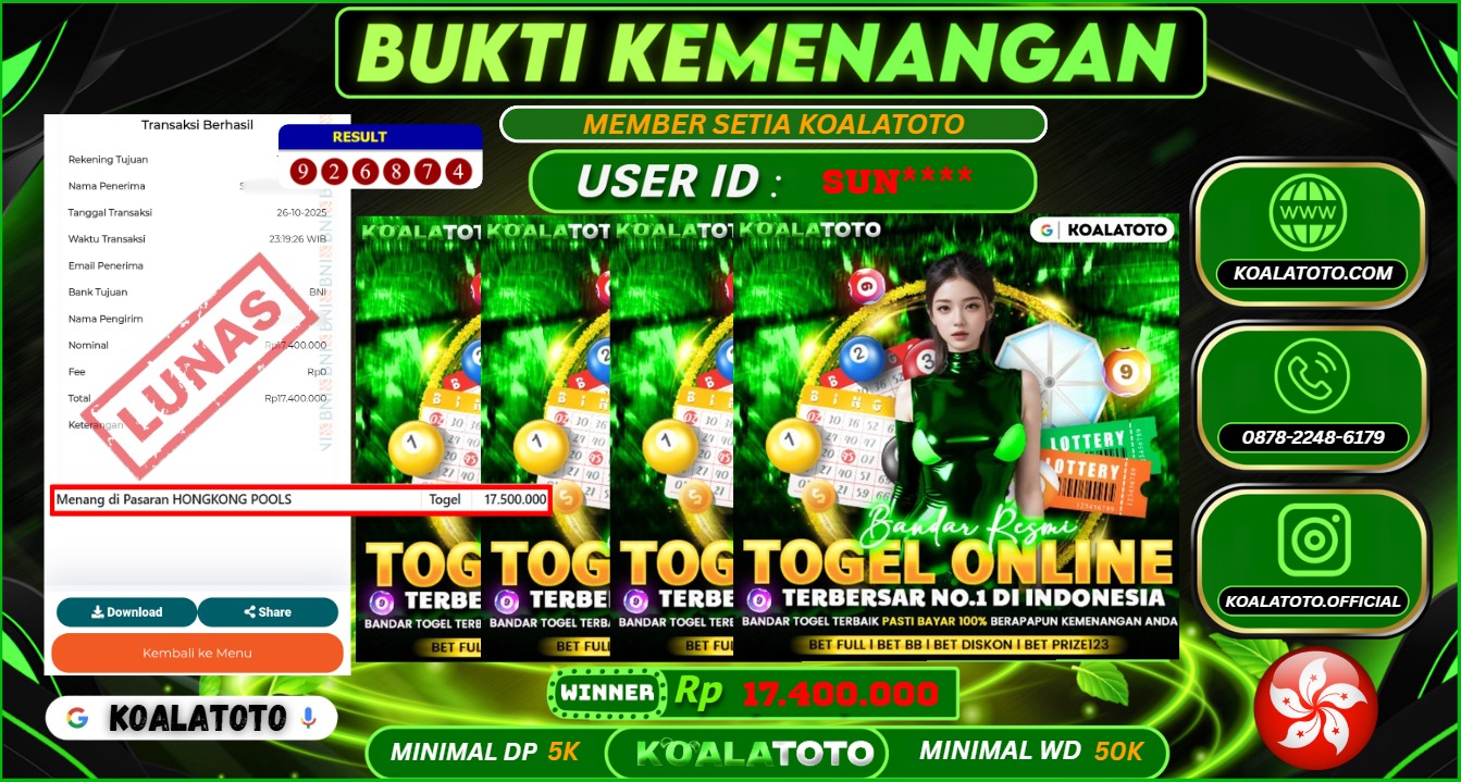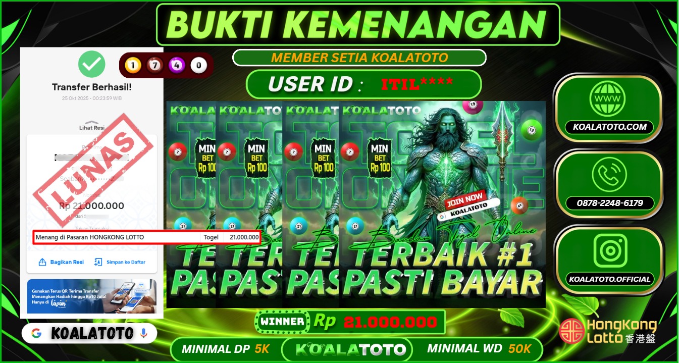 Selamat kepada USER ID : IKA**** || Telah berhasil mendapatkan kemenangan pada Pasaran TOGEL SYDNEY POOLS Pihak KOALATOTO Mengucapkan Terima Kasih Kepada Pemenang karena Sudah Mempercayakan KOALATOTO sebagai Platform Situs Bandar Togel Online dan Slot Online Terpercaya & Terbesar yang Membayar Kemenangan Member berapapun itu tanpa ribet sampai LUNAS !!! Setelah mengisi FORMULIR WITHDRAW pihak KOALATOTO membutuhkan waktu sekitar 1-3 MENIT Untuk memproseskan Kemenangan Kalian Kami menegaskan bahwa KOALATOTO bukanlah Bandar Kaleng-Kaleng. Kami meyakinkan bahwa semua kemenangan akan dibayarkan Bergabunglah dengan KOALATOTO sekarang dan dapatkan kesempatan memenangkan Jackpot besar hanya di KOALATOTO !!!