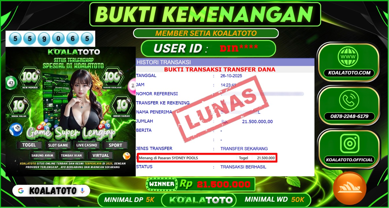 KOALATOTO JACKPOT TOGEL SYDNEY POOLS || Rp.32.200.000.,- DI BAYAR LUNAS !!!